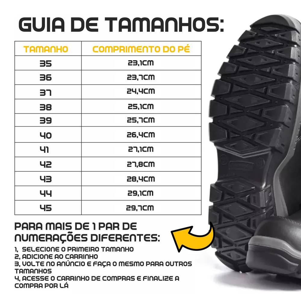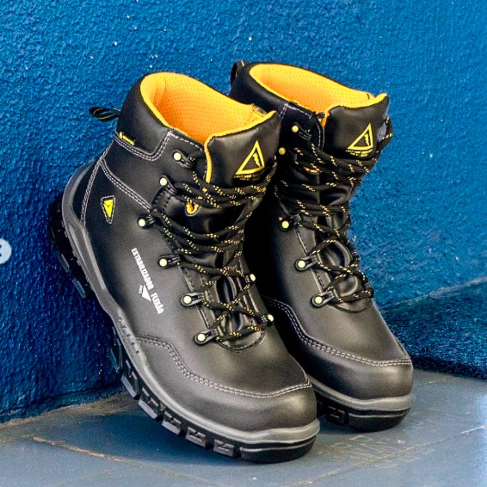 Sua palmilha antiperfuração e lingueta semifole oferecem alta segurança e maior proteção.