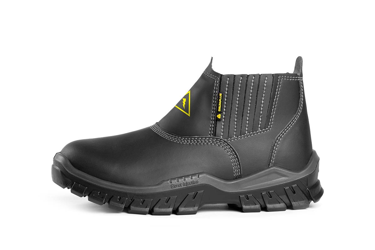 ➥ Aprovada para proteção dos pés contra impactos, agentes abrasivos, escoriantes e contra choques elétricos: trabalhos com baixa tensão (até 500 V) em ambiente seco.